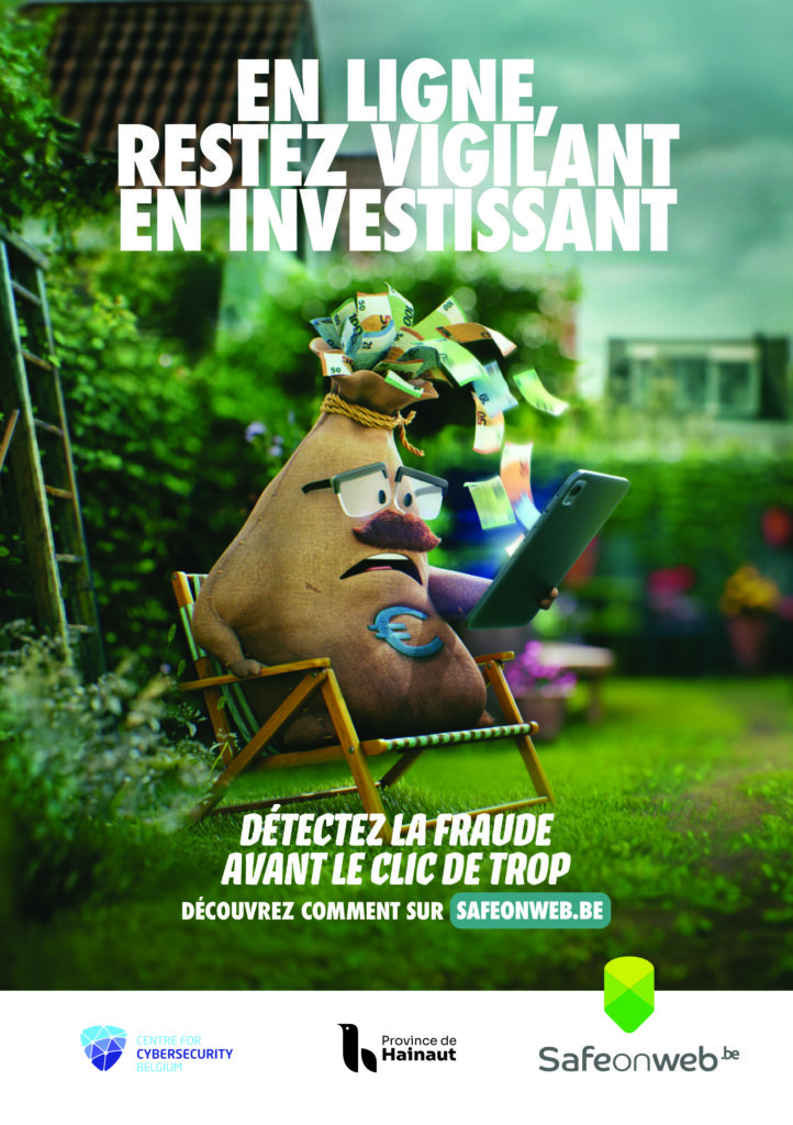 La Province de Hainaut est partenaire de la campagne nationale annuelle de Safeonweb qui sensibilise à la cybersécurité pendant tout le mois d’octobre. Aujourd »hui, nous vous proposons le scénario classique d’une fraude à l’investissement.