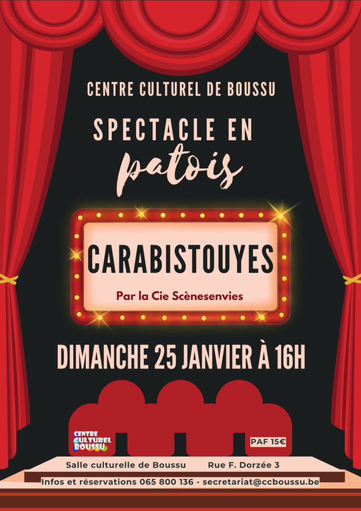 Infos : rue F. Dorzée 3 à Boussu, 065/80 01 36, animation@ccboussu.be, https://www.facebook.com/events/2001662187045415?locale=fr_FR(See attached file: carabistouyes.png)