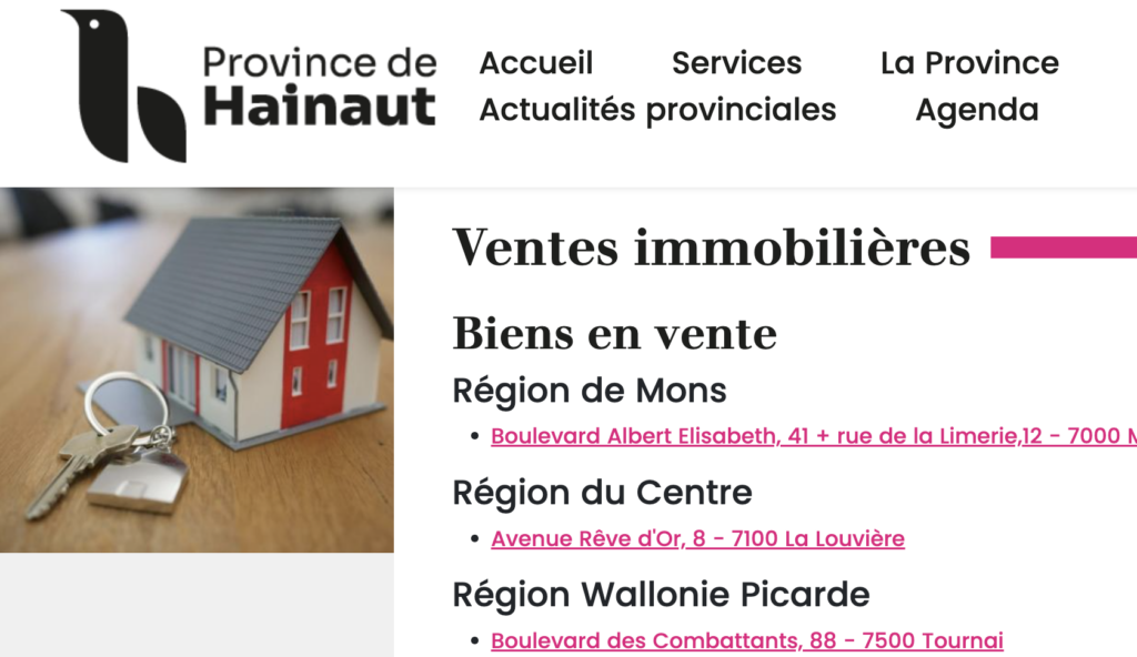 L’annonce de la mise en place de la stratégie immobilière globale et de la vente de bâtiments provinciaux a suscité son lot d’inquiétudes et alimenté quelques rumeurs. Une liste de 20 bâtiments dont la fin d’occupation va cesser ou qui sont déjà vides vient d’être validée par nos autorités : les premières ventes sont consultables sur une page spécifique de notre portail officiel: https://www.hainaut.be/la-province/ventes-immobilieres